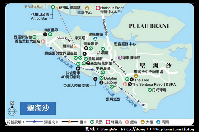 今天的行程不是"散步"行程,而是貨真價實的"健行"行程,新加坡Mount Faber Park 花柏山公園,對於愛健行的山友們是不錯的選擇,因為新加坡的最高峰是 Bukit Timah 武吉知馬山高度 163.63 M,但花柏山應該還不到100M,雖然不高但它是坐落在港口旁,所以有很好的視野可看,一邊看港口及聖淘沙島一邊看巿區的高樓交通可塔MRT捷運東北線到第一站Harbourfront 站 A出口停車場後方即是登山口;回程就直接在 HortPart 園藝中心 塔Bus回巿區