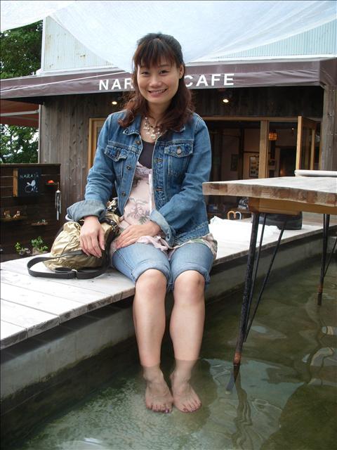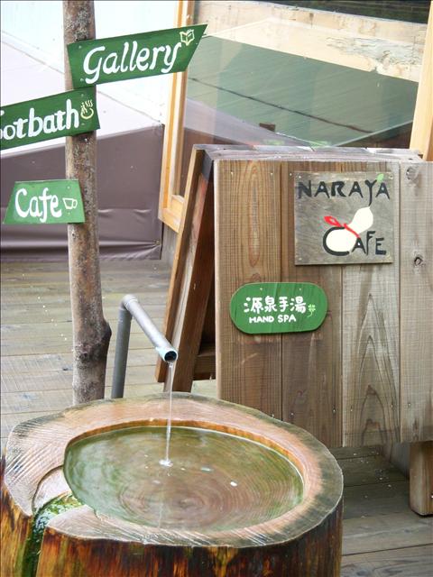 穿過月台,我們在路邊的咖啡屋看到有免費的足湯以及手湯