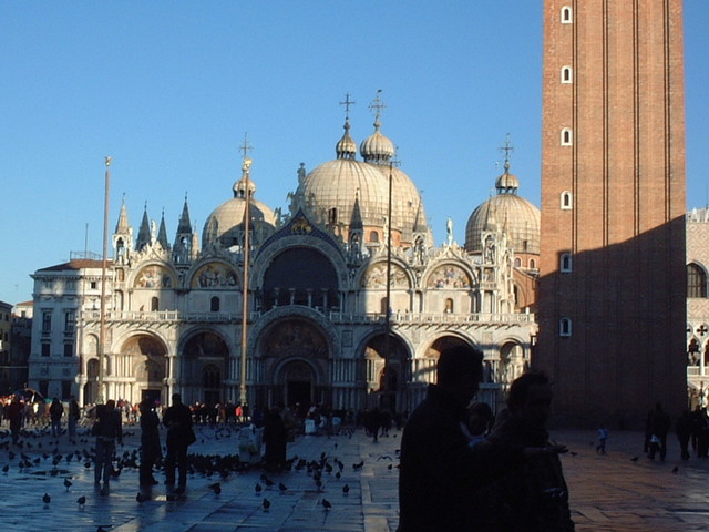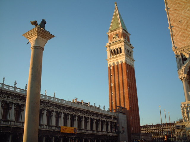 Piazza San Marco(St. Mark's Square)聖馬可廣場,是義大利建築的一件瑰寶, 廣場包括結連的兩部分:廣場主體和臨海的小廣場. 廣場四周矗立著藝術價值很高的建築佳作: 聖馬可教堂., 總督府, 連拱廊和高高的鐘樓