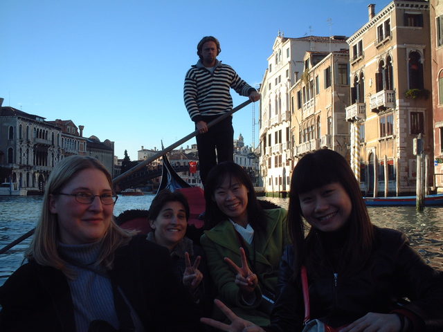 Gondole的船夫會穿著海軍風的衣服, 一邊划槳一邊有時還會唱義大利民謠(左手邊是南非的女孩)