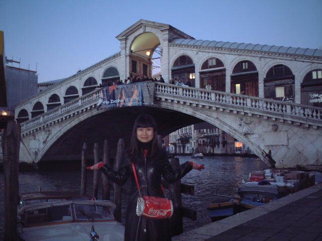 威尼斯由許許多多大大小小的島嶼組成,因此需靠水上工具, 路曲曲折折, 容易迷路,其間有許許多多的小店可逛, 賣水晶, 賣面具,小飾品,衣服, 鞋子, 餐廳...,等, 在我身後的橋叫做 Rialto Bridge, 不只是個橋,也是個商店街