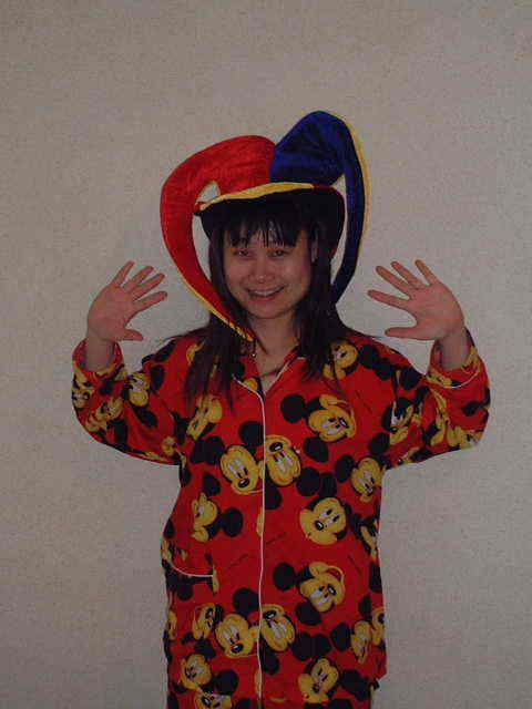 因為聖誕結早上要交換禮物,大家莫不把握機會挑適當的禮物給小天使,我頭上戴的是秋萍買給Carlos的禮物, 誇張的照型跟我的睡衣還挺配的!哈哈!