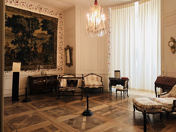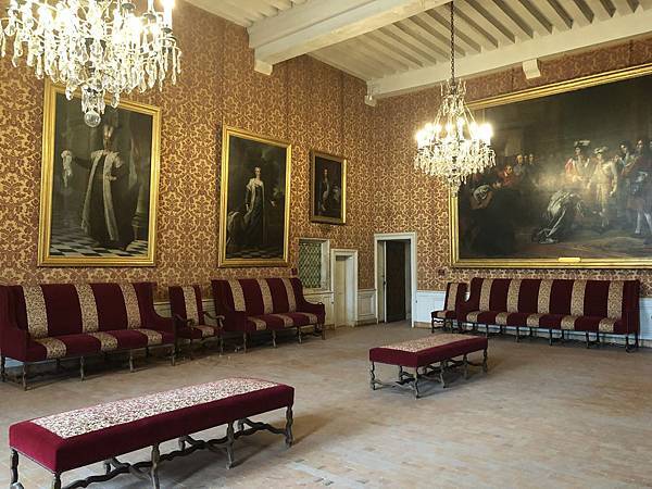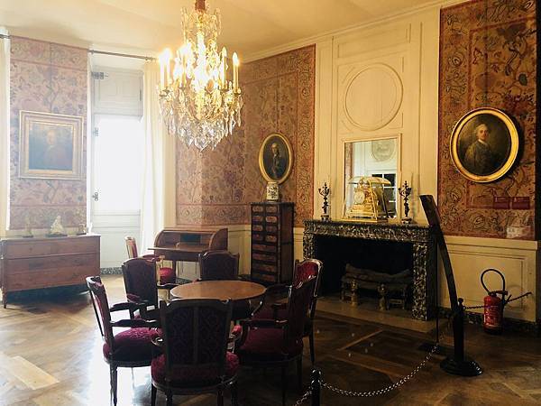 過去曾是臥室,現為接待室,牆上掛的人像畫是香博堡過去的賓客