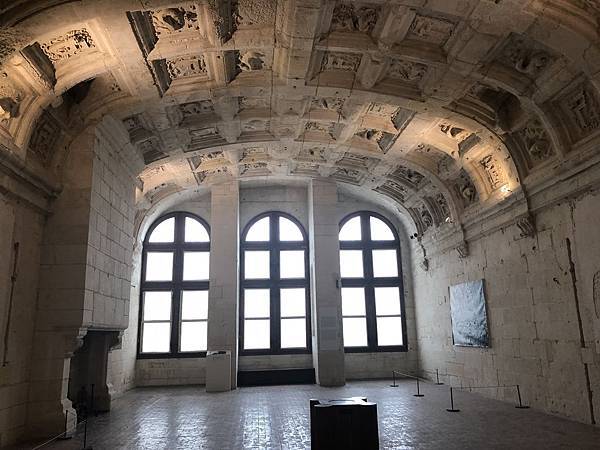 二樓大廳的拱頂雕花十分獨特,它將弗朗索瓦一世的花體縮寫字母「F」和其蠑螈標誌結合起來,大廳內設有壁爐,以供室內取暖。