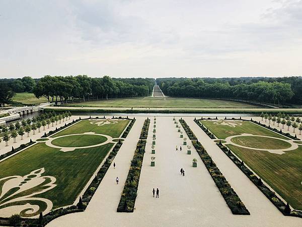 古堡長寬各有100多米,氣勢磅礴。中間是正方形的主堡,兩側爲六個圓錐形的巨大角樓。城河環繞四周,背靠大森林面倚大花園,綠樹、鮮花、雕塑和清澈的湖水,給人以極佳的視覺享受。與我國古代皇家園林相似,宮堡是王權的象征,它一開始就不是爲了防禦,而是爲了炫耀和享受,它體現的是華麗誇張的皇家園林風格,是皇權和藝術的完美結合。 去任何一個盧瓦爾河穀的城堡,都要穿過這樣夢境般的小道。