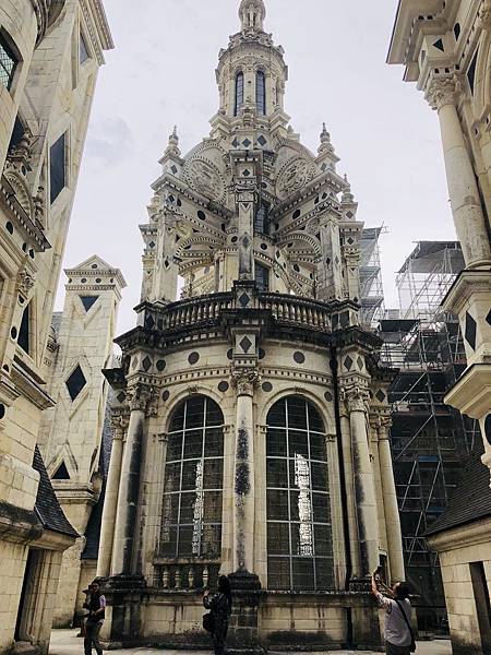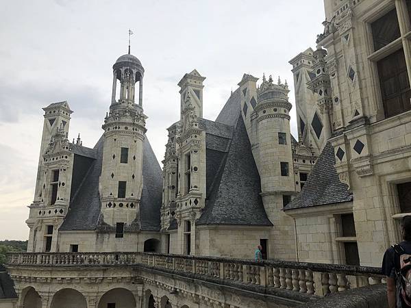 從正面眺望香博堡的華麗姿態,交錯林立的裝飾塔樓堆棧出的趣味節奏,是香博堡最著名的第一眼印象。這般大量甚至漫無節制的裝飾性設計,在法蘭西初嚐文藝複興滋味之時,隻知古典裝飾的運用技法,還未深入領略文藝複興強調的終極和諧美感,於是建築師便設計出香波堡這般華麗綴飾的外觀形貌,在盧瓦爾河流域諸多的文藝複興風格城堡當中,格外予人童話般的夢幻感受。